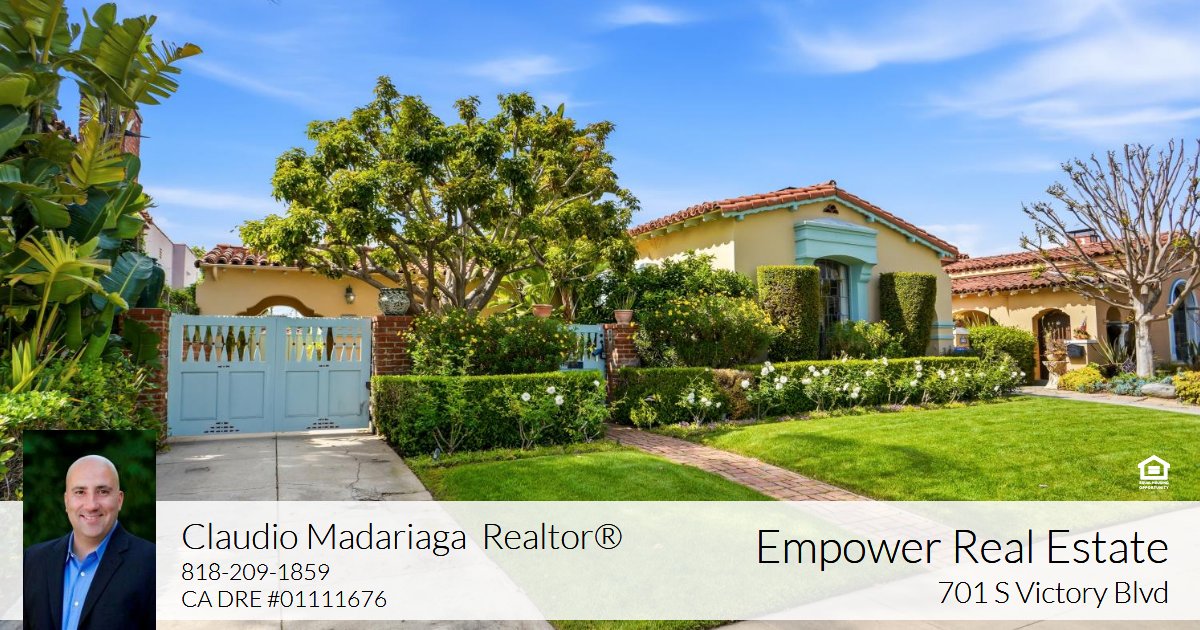 Gorgeous Spanish retreat located in the coveted South Carthay HPOZ. Built in 1934, it includes 3 bedrooms, 2 bathrooms, a den, 2,238 square feet of living space and a 6,885 square foot lot. The hand-crafted artisan gates open to the lushly landscaped brick courtyard and tranquil sounds of its bubbling fountain. The sundrenched living room includes a soaring ceiling with intricately patterned beams, beautifully mantled fireplace, stained glass picture window with street views and French-doors which open to the courtyard. The spacious formal dining room is highlighted by its tall tray ceiling with multiple crown moldings and courtyard views. Adjacent lies the quaint breakfast nook which boasts a built-in hutch. The kitchen exudes the historic charm of the home through its extensive use of period tile and also includes Shaker style cabinets, granite countertops and stainless-steel appliances. The utility room with washer and dryer hook ups is conveniently located off the kitchen. Travel down the main hallway to find original architectural details such as built in storage cabinetry, a built in bookcase with scalloped archways and a stunning stained glass rotunda skylight. The cozy den is a great space to curl up with a good book. The primary suite is generous in size and has 2 closets. The main bathroom is also accessible from the primary suite and boasts period tile, a separate tub, shower and secluded water closet. The first guest bedroom has a Murphy bed, but currently doubles as an office due to its custom built in cabinetry. The second guest bedroom overlooks the backyard and has access to the remodeled full guest bathroom. The backyard has a charming covered patio perfect for al fresco dining and a large grass area for entertaining family and friends.